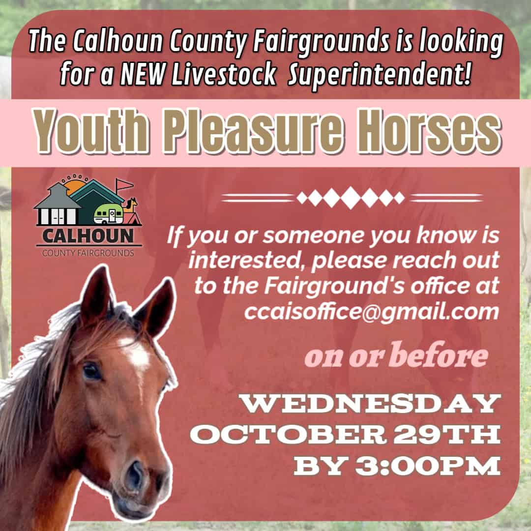 The Calhoun County Fairgrounds is looking for a new Livestock Superintendent!